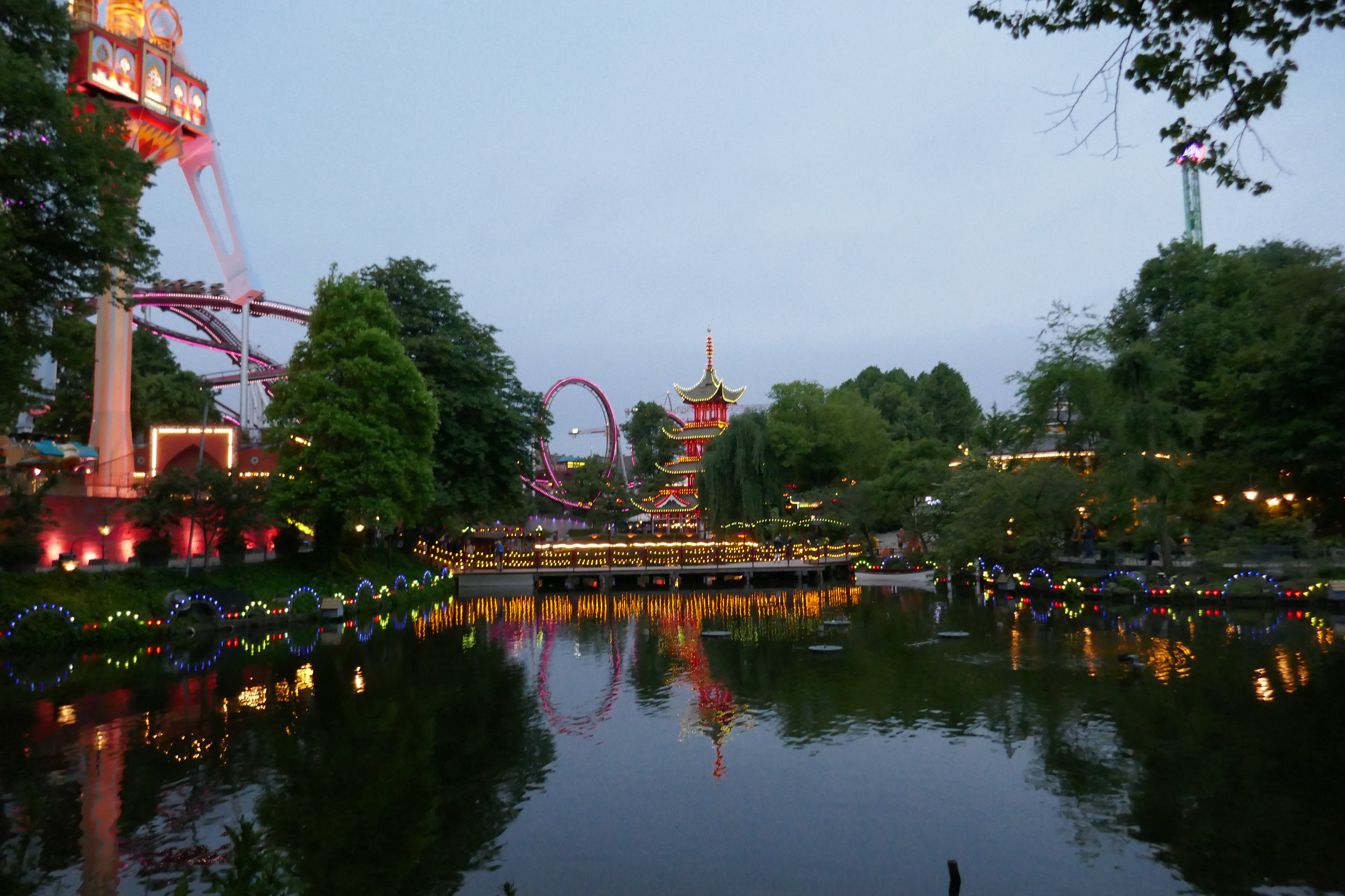 Right in the middle of Copenhagen, there’s a large city block completely hidden from view behind high fences and trees. You would pass it unnoticed were it not for the sight of high, brightly-coloured and strange-looking towers, and the almost constant sound of excited squealing from beyond the trees. This is the famous Tivoli Gardens, opened in 1843, and (apparently) the inspiration for Disneyland. Invisible from the street, it’s a magical world of fairy-lit gardens, concerts and performances, and vintage crazy rides that still have the power to delight kids of all ages. The minute you start walking through the Gardens, the busy city streets outside disappear and you are in an enchanted world. I loved it 50 years ago and love it still.