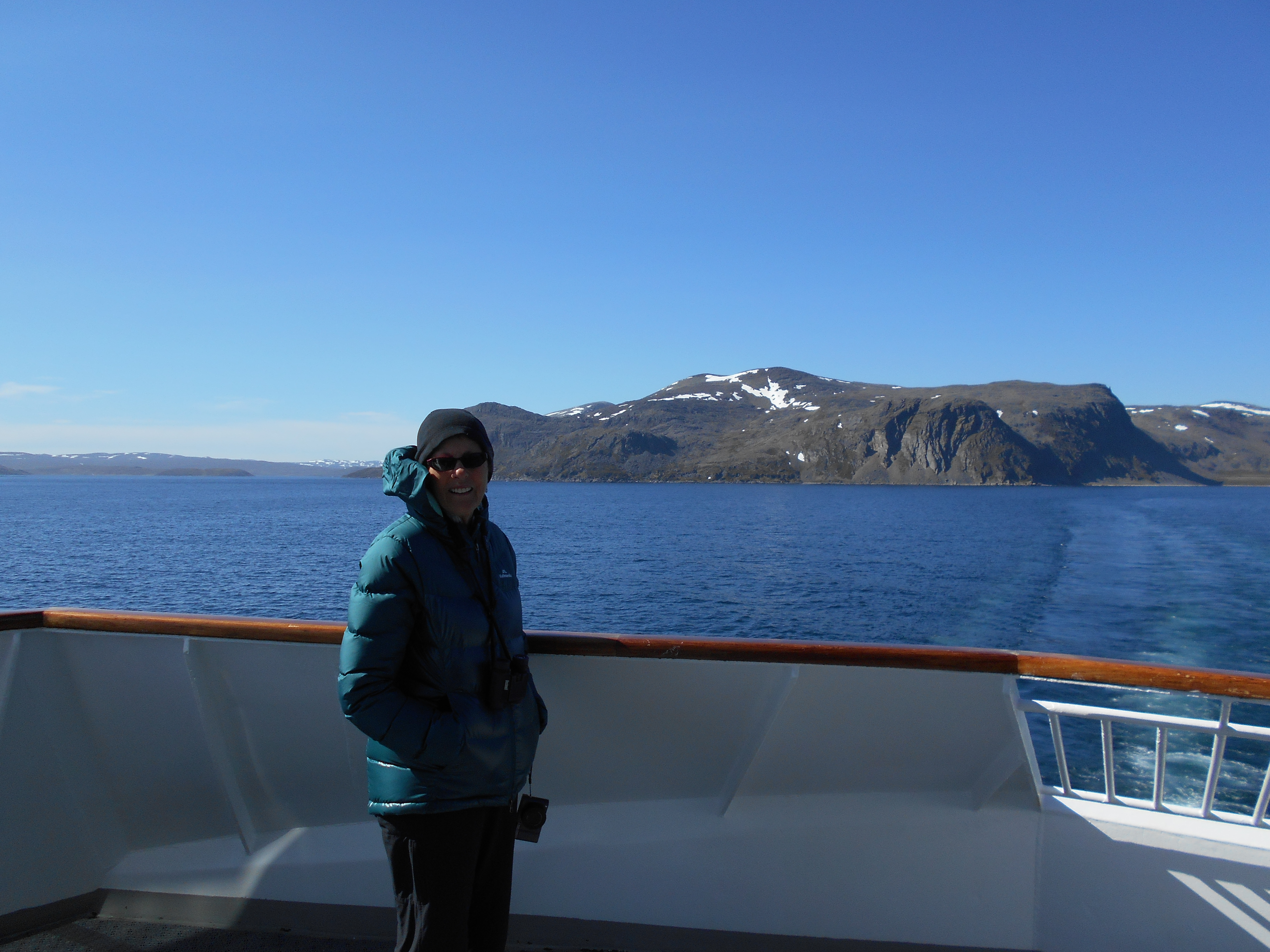 Then, today, the Gods rewarded us with a glorious, sunlit day. Cold, but clear and sunny. We’re now above 71° North and starting to sail East across the top of Norway towards Russia.