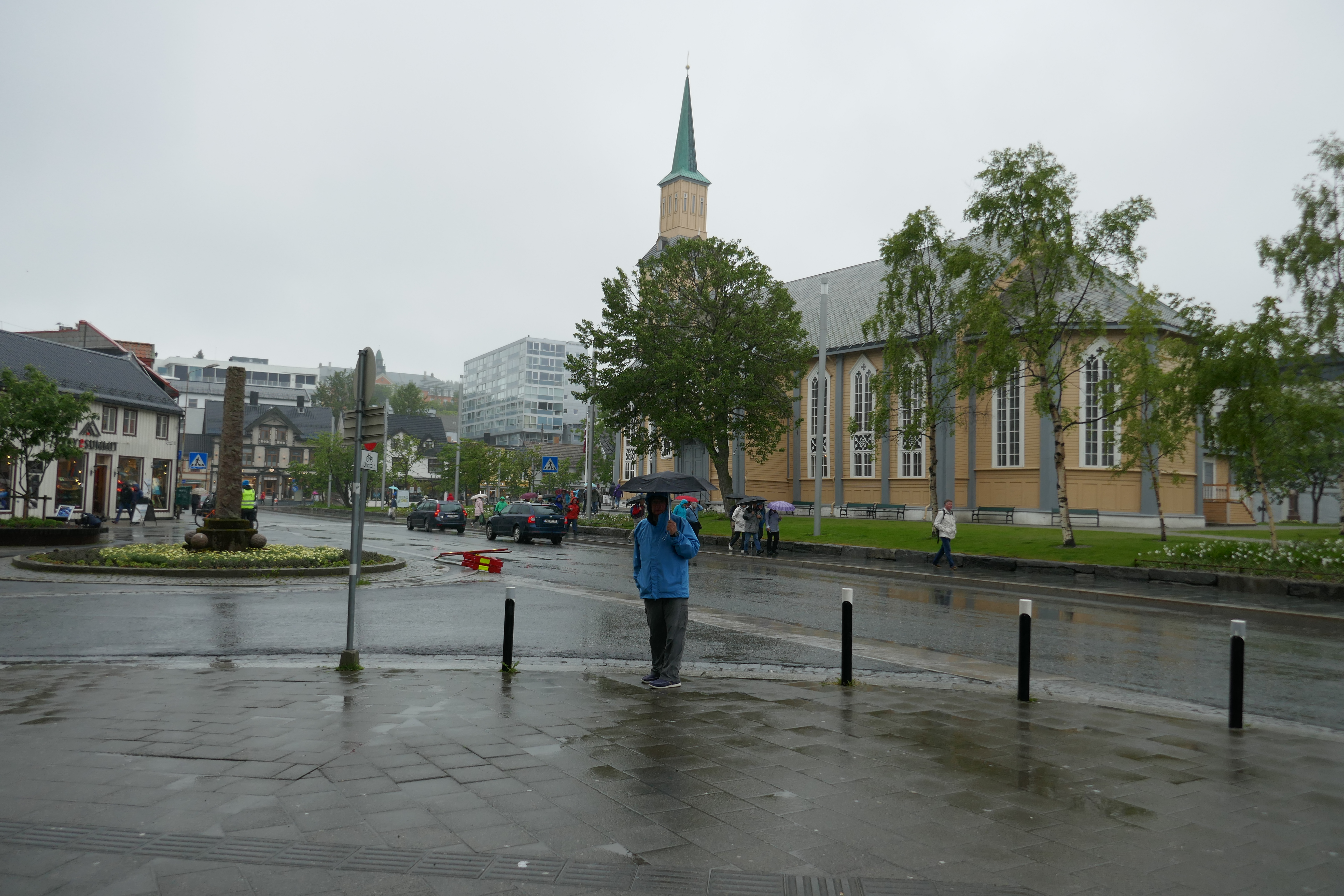 Darkly wet in Tromso, next to the Tromso Domkirke, Norway’s largest wooden church