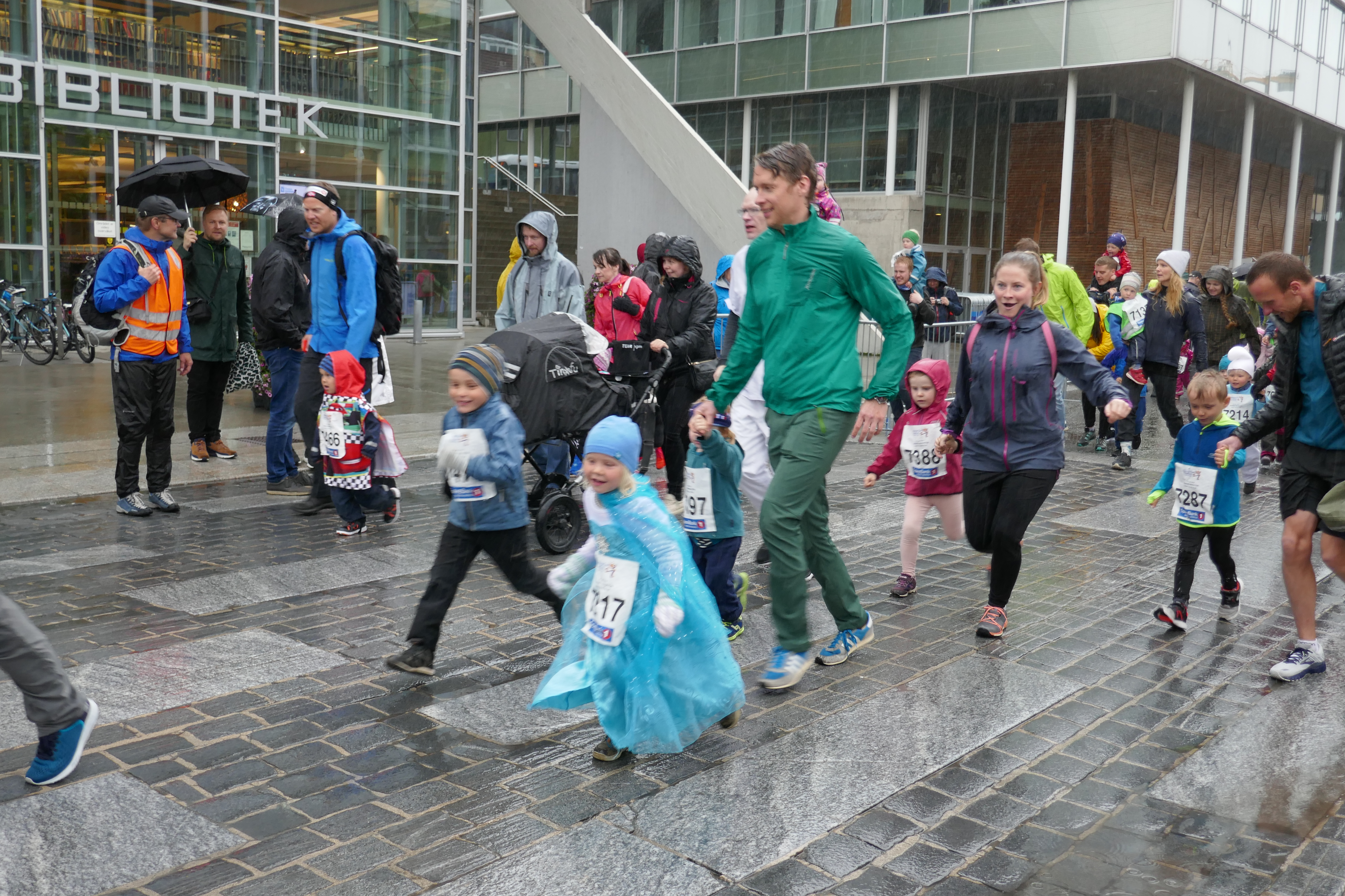 The little kids of Tromso run their mini-Midnight Sun Marathon in the rain