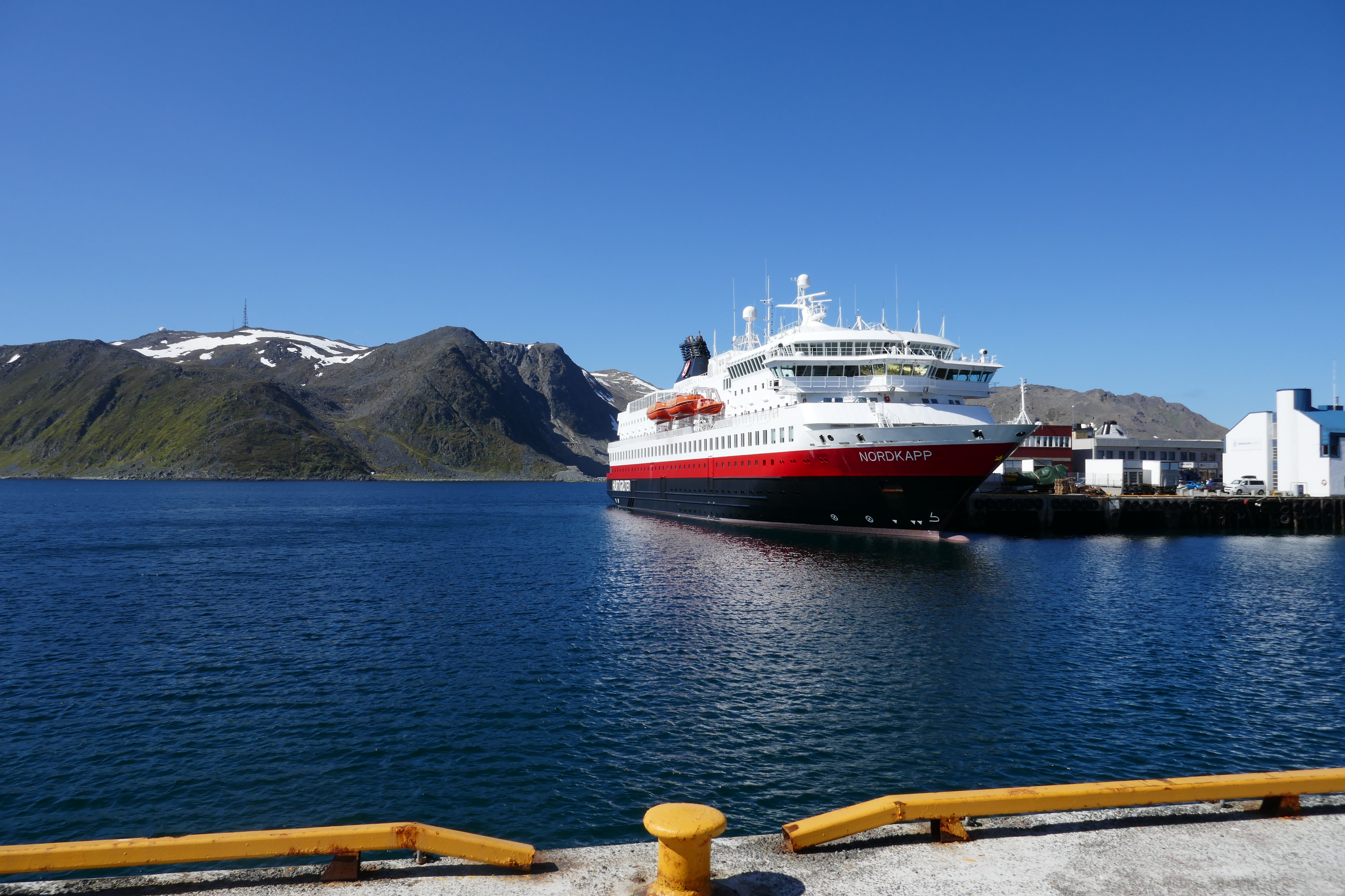 Our little ship, Hurtigruten’s 11,386 tonne MS Nordkapp, at Honningsvag