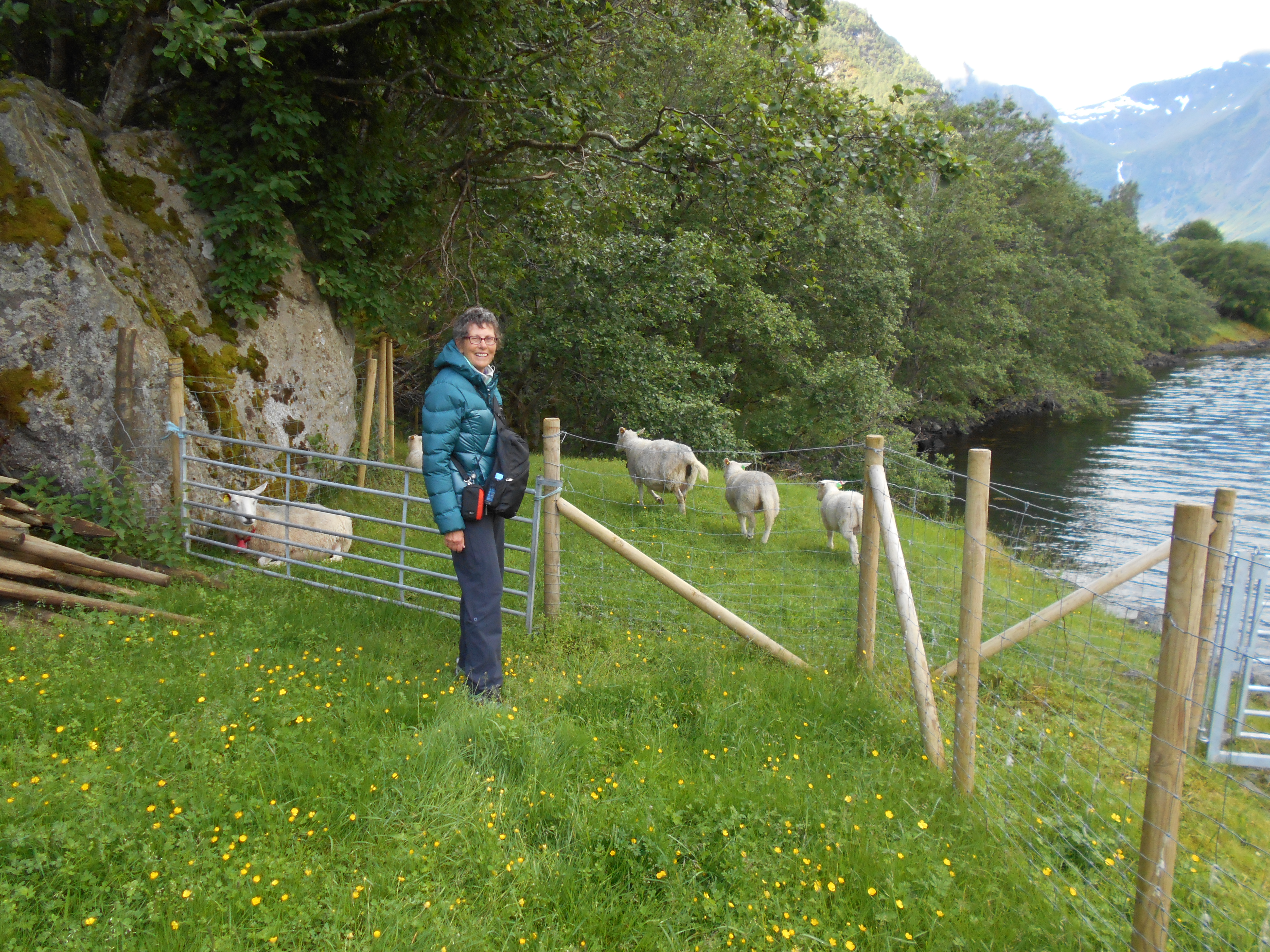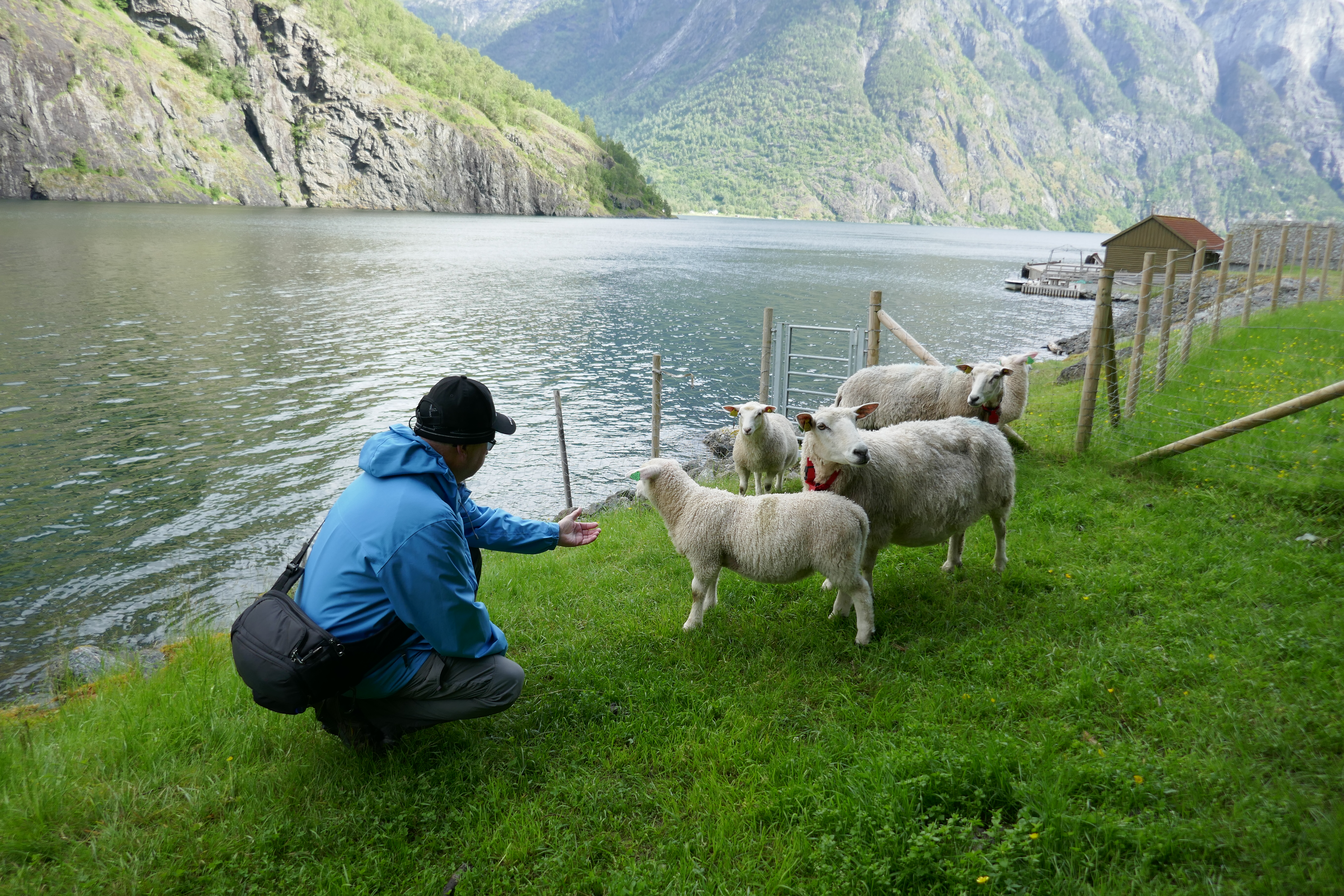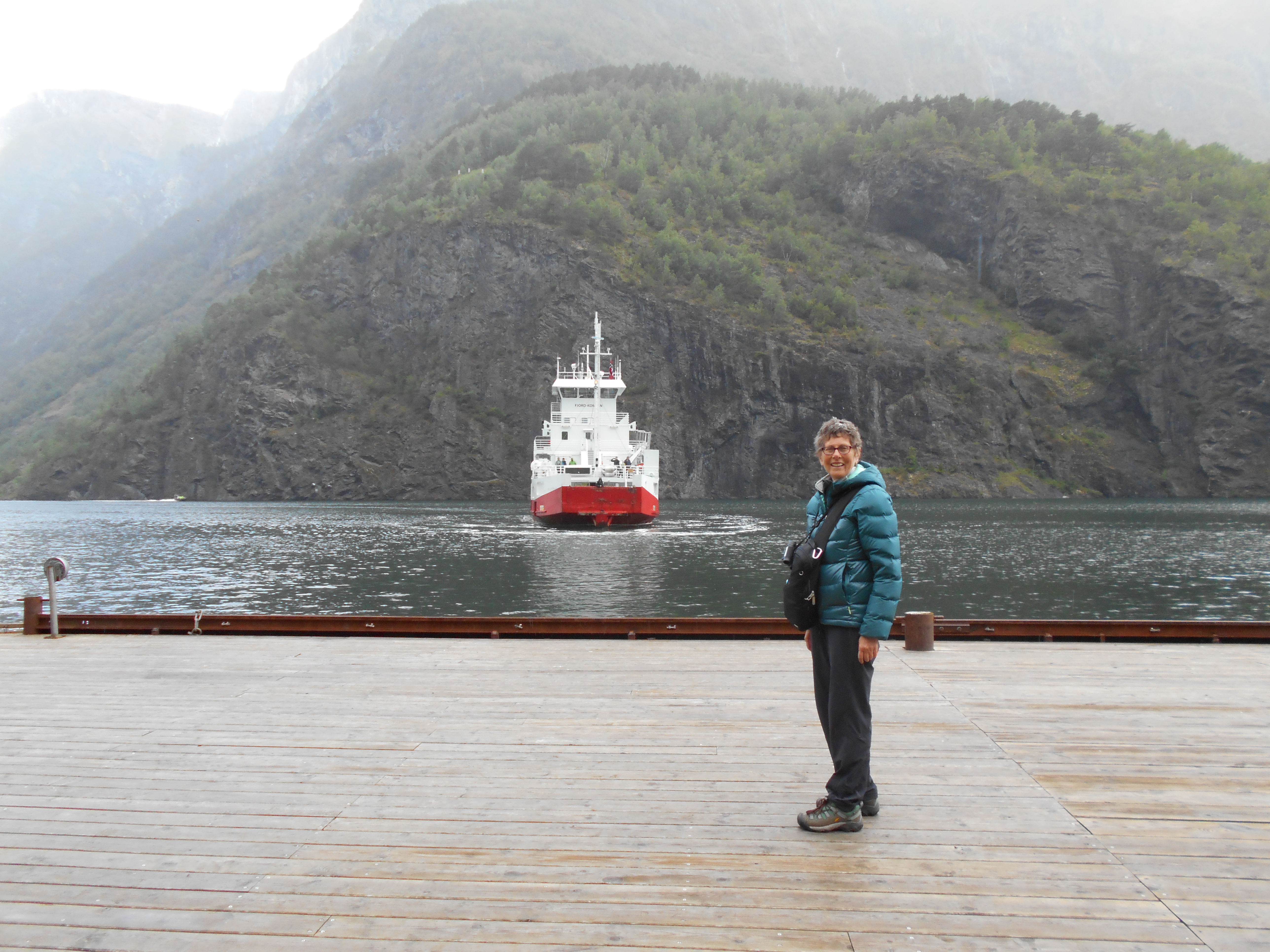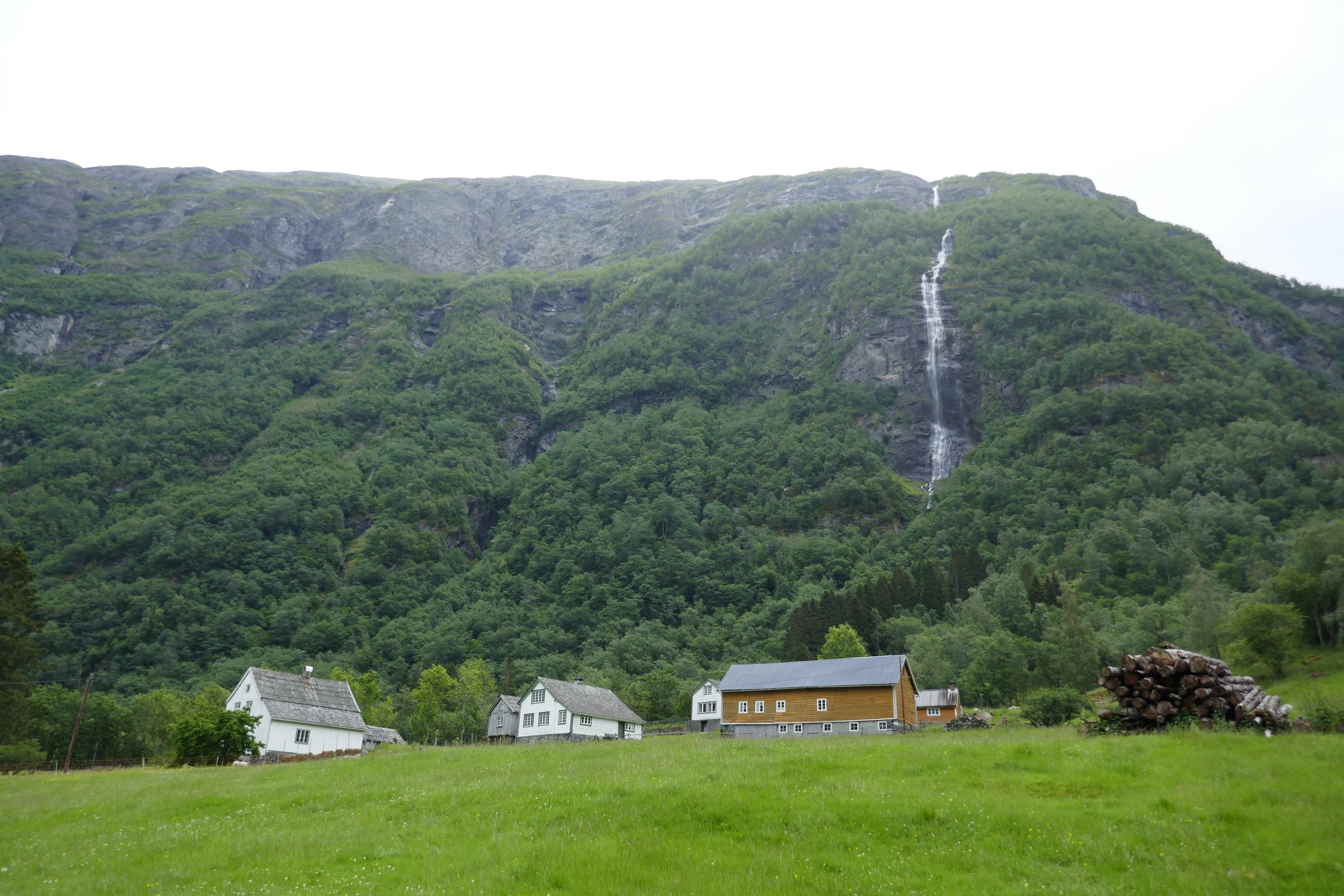 But how to get there? The ferry from Flam to Gudvangen stops on request at the farm at Styvi. Well, it doesn’t actually stop. It pushes briefly against the jetty and you jump. Then, when you want the ferry to pick you up, you signal from the jetty as the ferry approaches on its way down the fjord, and it pushes against the jetty again for you to jump back on.
