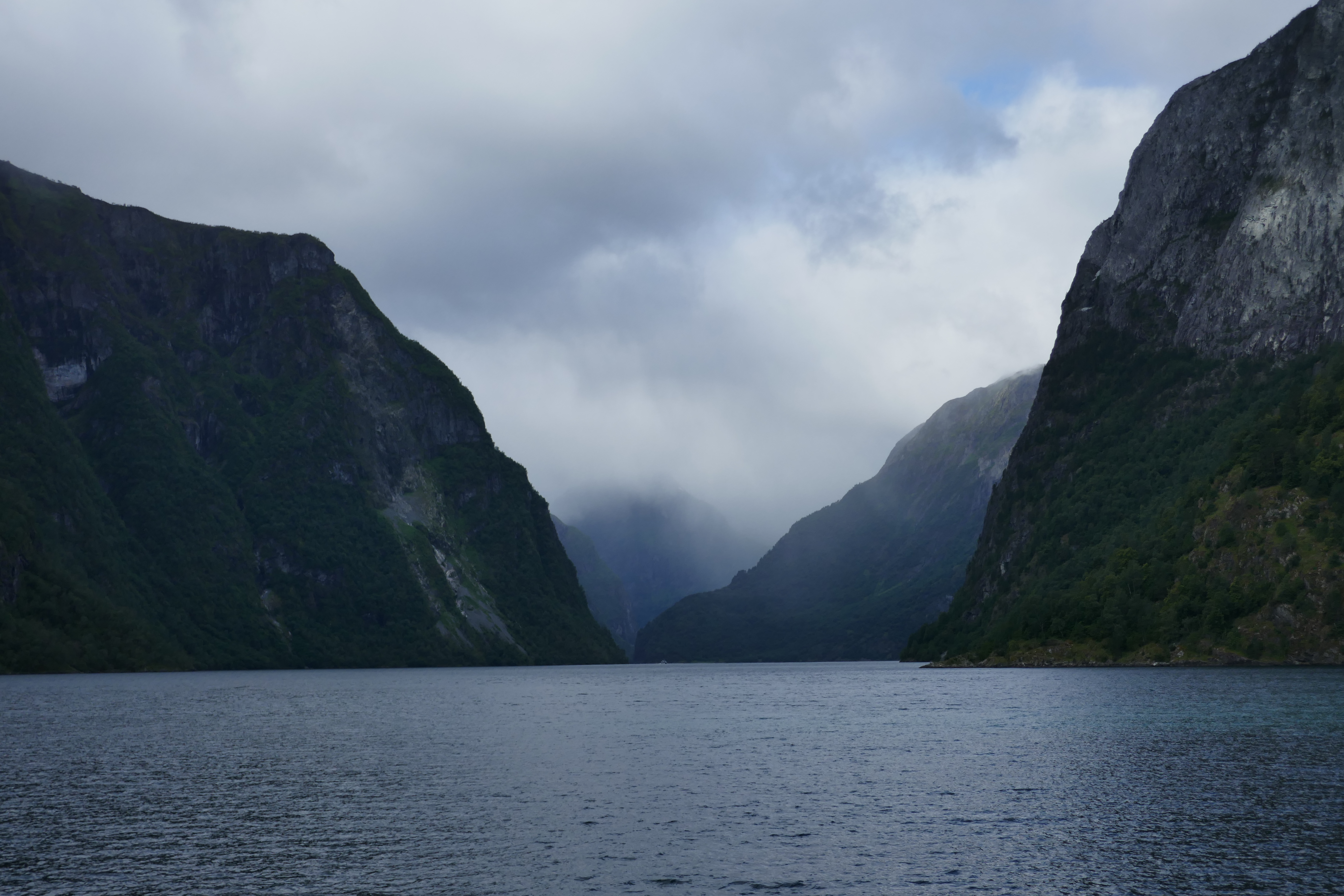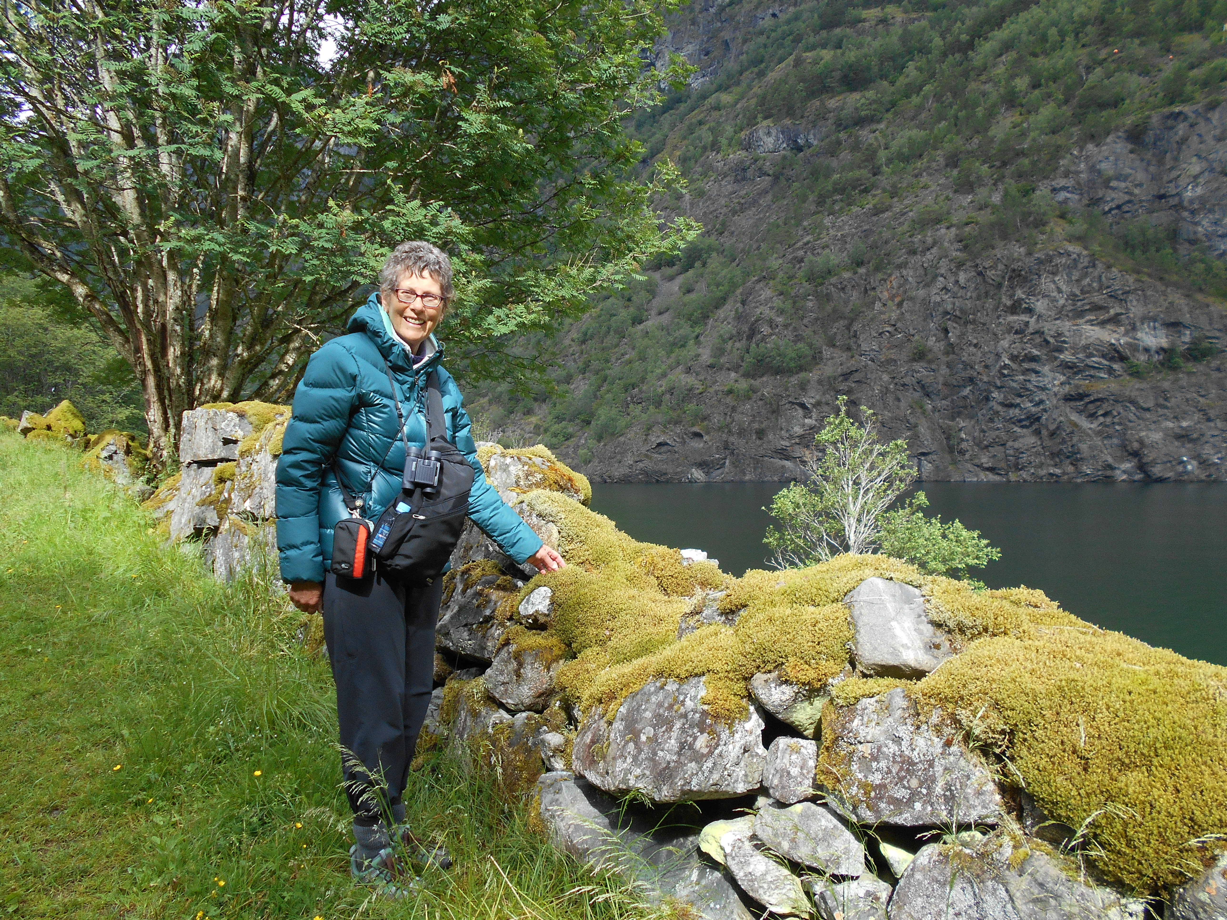 So, cut to the chase. We did the walk, or at least part of it – the ferry schedule didn’t allow us to stay long. And it was magical, quietly calm and peaceful. I was concerned that the steep, narrow darkness of the fjord might be intimidating, but it wasn’t. The rain held off, and there were splashes of sunlight. And the only sound was from the ever-present waterfalls and the lapping fjord …. and the occasional RIB boat roaring past ☹